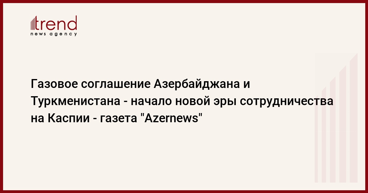 БАКУ /Trend/ - В статье "Газовое соглашение Азербайджана и Туркменистана - начало новой эры сотрудничества на Каспии", опубликованной в газете "Azernews", рассказывается о вкладе в сотрудничество между двумя странами и регионе в целом, внесенном соглашением, подписанным в прошлом месяце по совместной разработке месторождения "Достлуг", сообщает в пятницу Trend.
