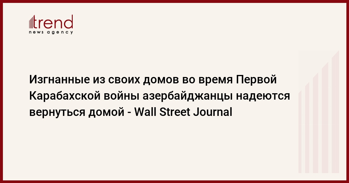 Об этом, как передает Trend, говорится в статье под названием «Азербайджанцы борются за возвращение в заброшенные города, десятилетия спустя после первого нагорно-карабахского конфликта с Арменией», опубликованной Wall Street Journal.