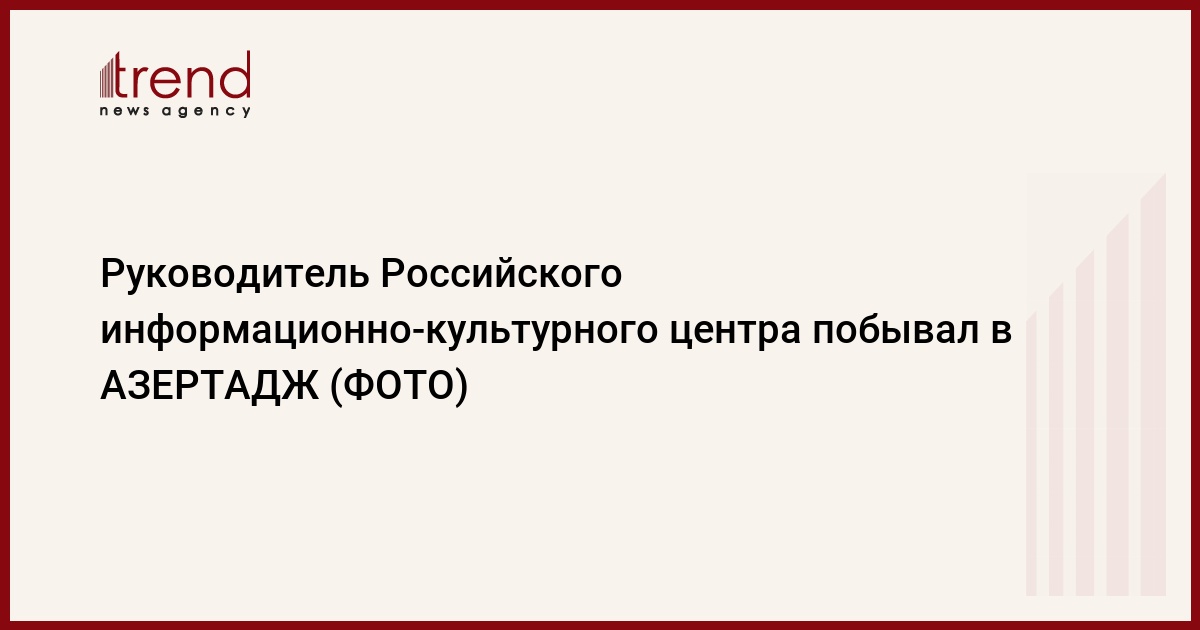 БАКУ /Trend/ - Новый руководитель Российского информационно-культурного центра Ирек Зиннуров побывал в АЗЕРТАДЖ. На встрече с председателем Правления Асланом Аслановым были обсуждены вопросы азербайджано-российского сотрудничества в области медиа.