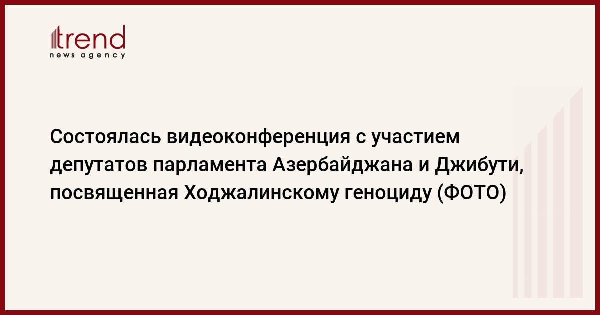 БАКУ /Trend/ - В воскресенье по инициативе азербайджано-джибутийской рабочей группы по межпарламентским связям в Милли Меджлисе прошла видеоконференция, посвященная 29-й годовщине Ходжалинского геноцида. К онлайн-конференции также присоединились представители посольства Азербайджана в Эфиопии, аккредитованного в Джибути, и посольства Джибути в Москве, сообщили Trend в отделе по связям с общественностью и печати парламента Азербайджана.