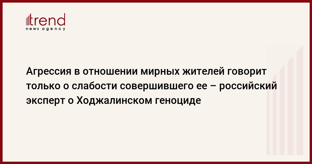 "Недопустимо замалчивание фактов вооруженной агрессии против мирного населения, которую можно приравнять к терроризму. Таким образом, игнорирование актов террора по отношению к мирному азербайджанскому населению можно рассматривать как пособничество терроризму, чего должно избегать всякое уважающее себя государство, нацеленное на успешное развитие и налаживание международных связей", – подытожила российский эксперт.