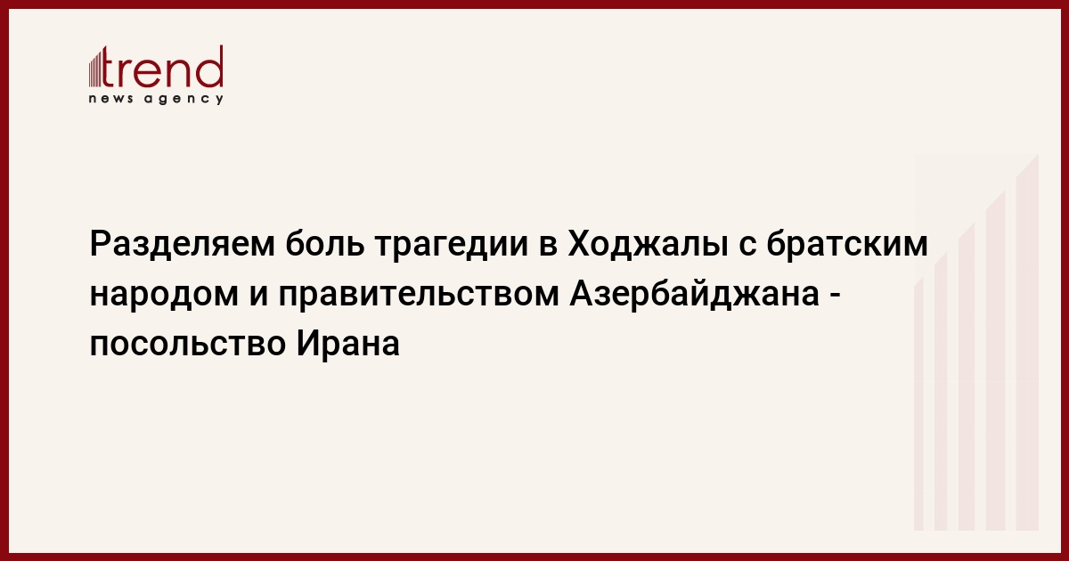 БАКУ /Trend/ - Посольство Ирана в Азербайджане поделилось публикацией на странице в соцсети в связи с 29-й годовщиной Ходжалинского геноцида, сообщает в пятницу Trend.