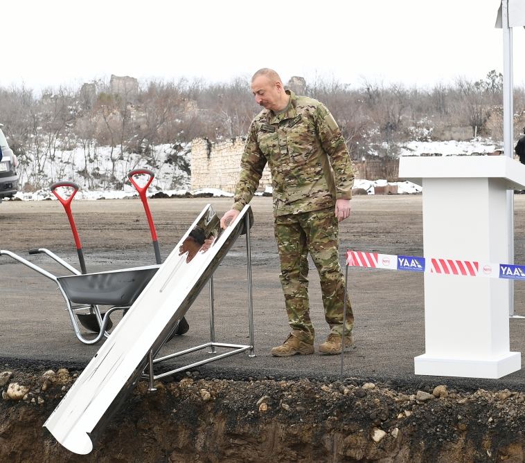 В ходе визита Президент Ильхам Алиев заложил фундамент автомобильной дороги Физули-Гадрут.