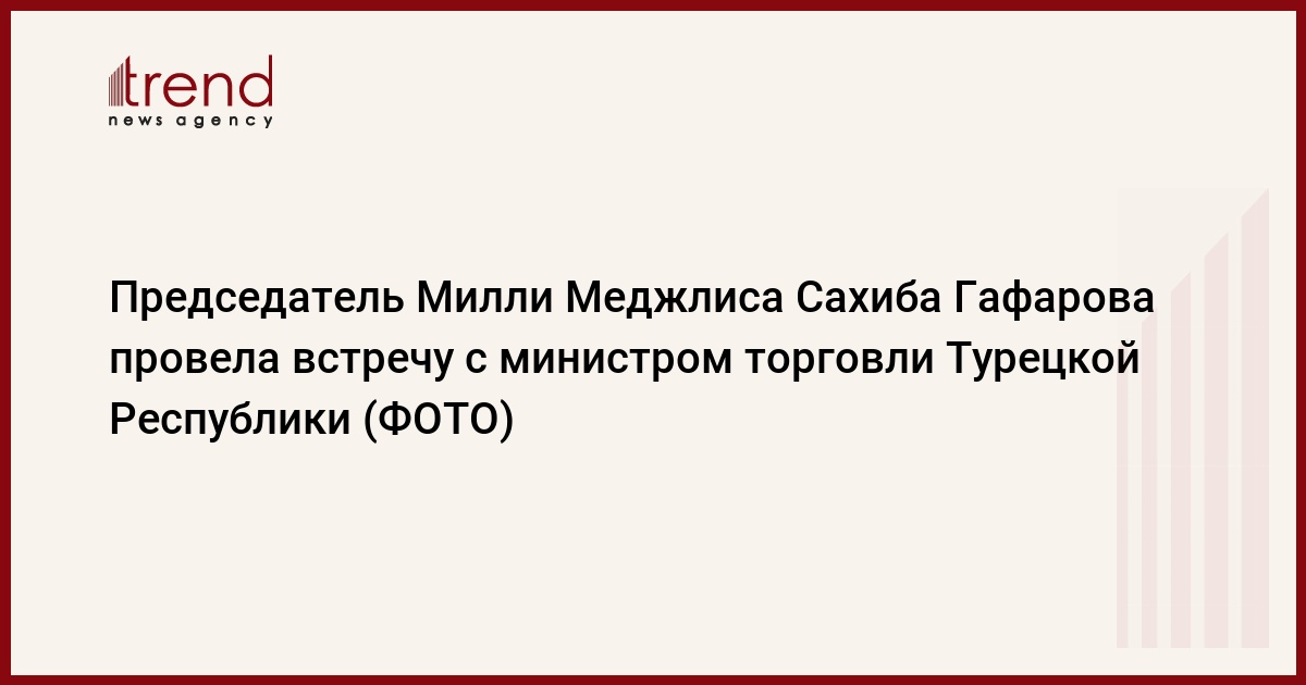 БАКУ /Trend/ - 2-го апреля Председатель Милли Меджлиса Сахиба Гафарова провела встречу с делегацией, возглавляемой министром торговли Турецкой Республики г-жой Рухсар Пекджан, передает Trend.