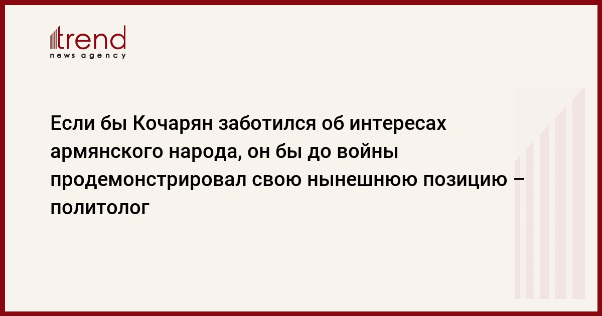 Об этом во вторник сказал Trend политолог Джейхун Ахмедли. По его словам, Роберт Кочарян, которого помнят как военного преступника и врага азербайджанского народа, в интервью российскому телеканалу озвучил два основных сообщения.