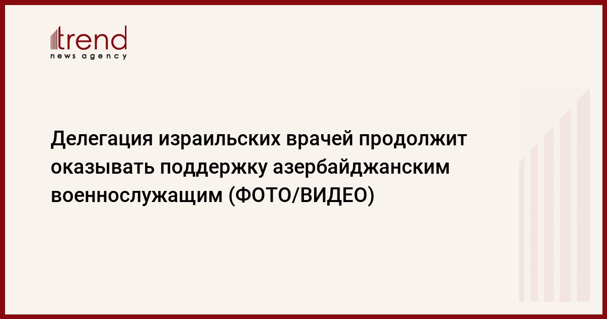 БАКУ /Trend/ - Делегация израильских врачей, находящаяся в Азербайджане, продолжит оказывать поддержку азербайджанским военнослужащим, получившим ранения во время второй Карабахской войны.