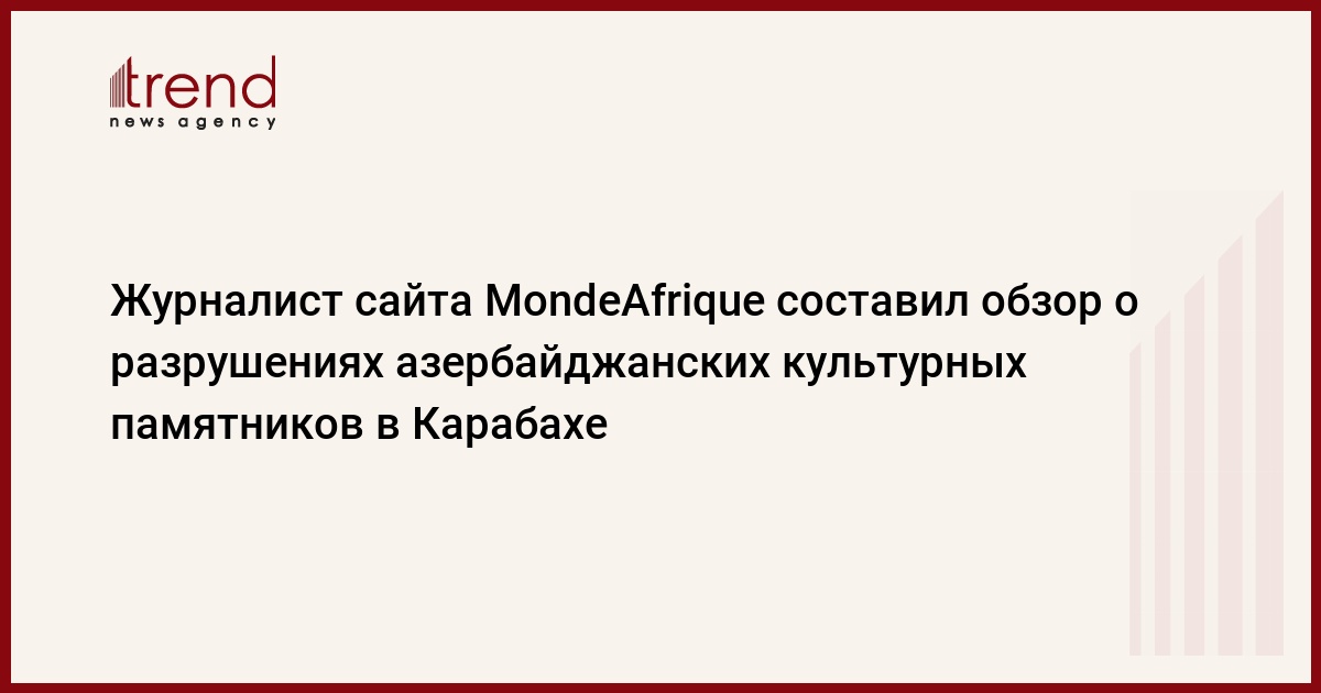 БАКУ /Trend/ - Журналист MondeAfrique Франсуа Фуркади составил обзор уничтоженных Арменией начиная с 1992 года и в течение 27 лет принадлежащих азербайджанцам культурных памятников в Карабахе. Во французской онлайн газете lagazetteaz.fr в связи с этим размещена статья.