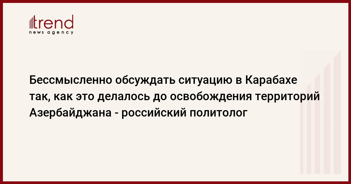 БАКУ /Trend/ - Любое обсуждение проблемы Нагорного Карабаха так, как это делалось до освобождения территорий Азербайджана, просто лишено смысла.