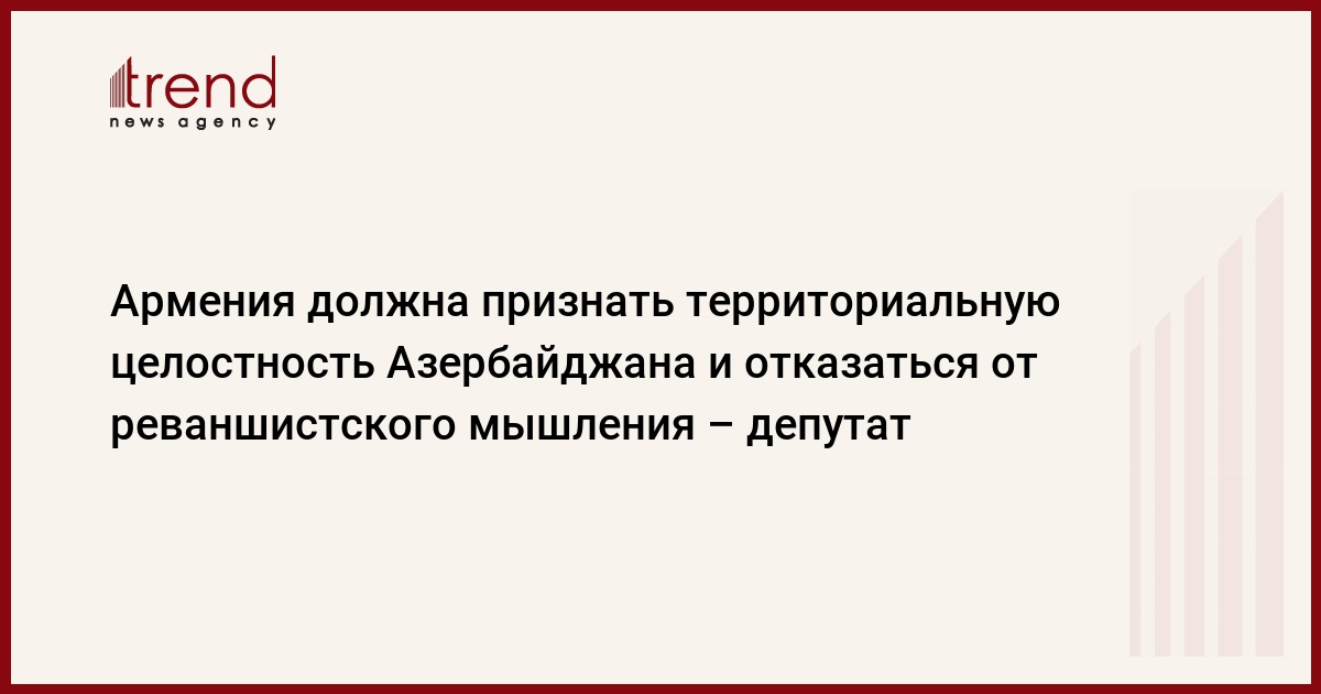 БАКУ /Trend/ - Армения должна признать территориальную целостность Азербайджана и отказаться от реваншистского мышления. В течение 30 лет эта страна проводила политику агрессии против Азербайджана и держала под оккупацией 20 процентов наших земель. В результате Азербайджан изолировал Армению от всех проектов в регионе, превратив эту страну в тупик.