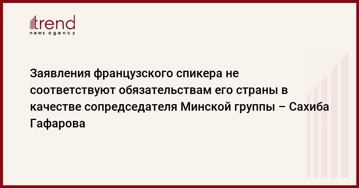 БАКУ /Trend/ - Заявления французского спикера никоим образом не соответствуют обязательствам, принятым на себя его страной в качестве сопредседателя Минской группы ОБСЕ.