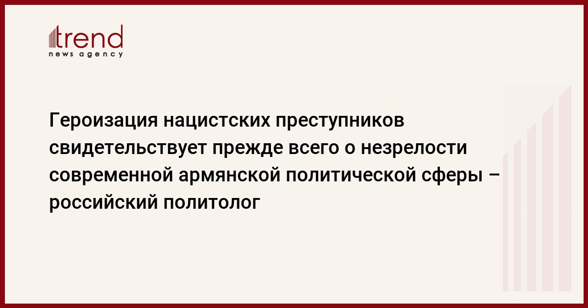 БАКУ /Trend/ - Героизация нацистских преступников свидетельствует прежде всего о незрелости современной армянской политической сферы.