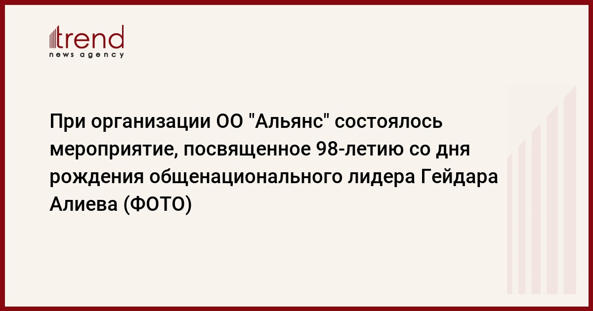 БАКУ /Trend/ - При организации Общественного объединения ветеранов органов спецслужб Азербайджана «Альянс» в Культурном центре Службы государственной безопасности (СГБ) состоялось мероприятие, посвященное 98-летию со дня рождения общенационального лидера Гейдара Алиева.