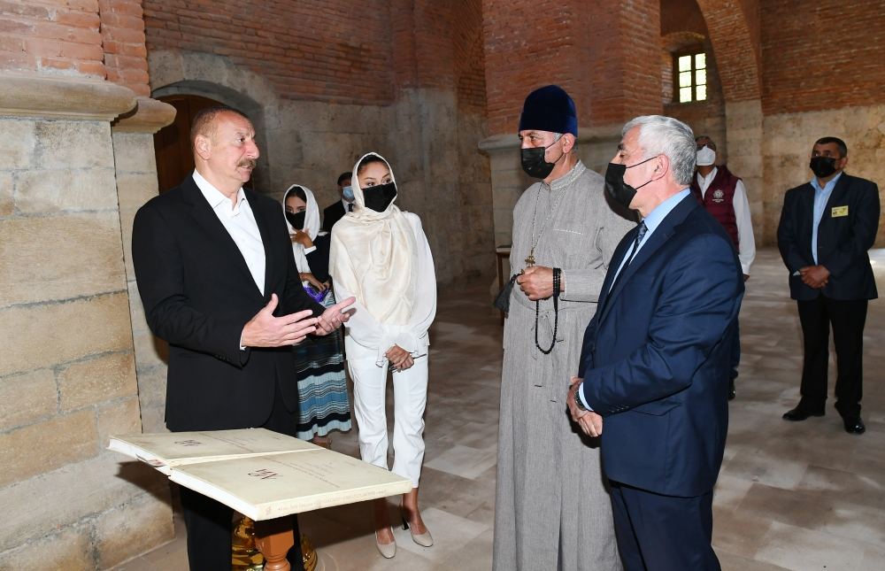 «Теперь вы совершаете богослужение как на территории Габалинского района, так и одновременно на освобожденных землях - и в Худавенге, и в Агоглане. Там есть и другие храмы, принадлежащие удинскому народу. Большая их часть находится в разрушенном или полуразрушенном состоянии. Поэтому мы восстановим и их. Вы будете посещать и те церкви. Вы несколько раз были в Худавенге.