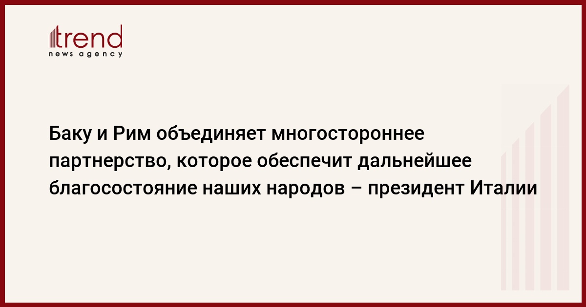 БАКУ/Trend/- Баку и Рим объединяют не только опирающиеся на общие интересы стратегические цели, достигнутые по всем направлениям двусторонних отношений – от энергетического сектора до сферы культуры, но и многостороннее партнерство, которое обеспечит дальнейшее благосостояние наших народов.