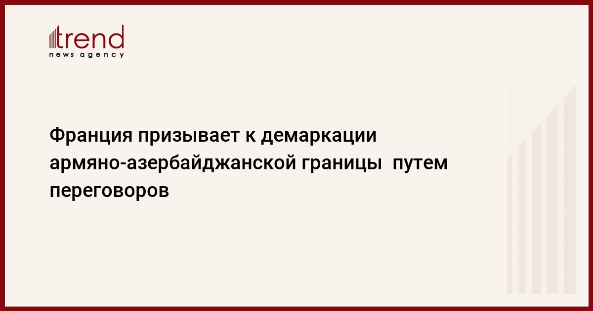 БАКУ /Trend/ - Франция призывает к демаркации границы между Арменией и Азербайджаном путем переговоров. Об этом сообщили в посольстве Франции в Баку, передает в субботу Trend.