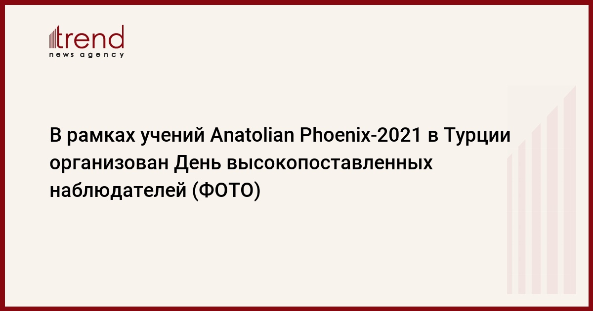 БАКУ /Trend/ - Находящийся с визитом в Турции заместитель министра обороны – командующий Военно-воздушными силами (ВВС) Азербайджана генерал-лейтенант Рамиз Таиров принял участие в мероприятии по случаю Дня высокопоставленных наблюдателей, организованном в рамках учений Anatolian Phoenix-2021, сообщает во вторник Trend со ссылкой на пресс-службу азербайджанского минобороны.