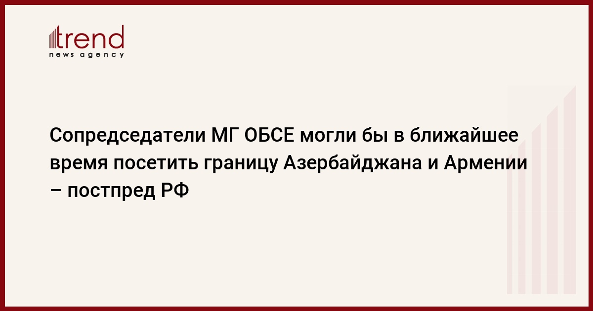 БАКУ/Trend/ - Сопредседатели Минской группы ОБСЕ могли бы в ближайшее время договориться о возможности визита на границу Азербайджана и Армении. Как сообщает Trend со ссылкой на ТАСС, об этом в среду заявил на пресс-конференции в режиме онлайн постоянный представитель РФ при ОБСЕ Александр Лукашевич.