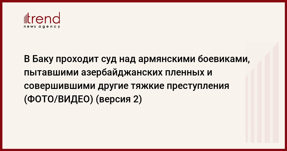 БАКУ /Trend/ - В Баку проходит суд по уголовному делу армянских боевиков Мкртычяна Людвика Мкртычевича и Хосровяна Алеши Арамаисовича, которые во время первой Карабахской войны пытали азербайджанских пленных и совершили другие тяжкие преступления, сообщает в среду Trend