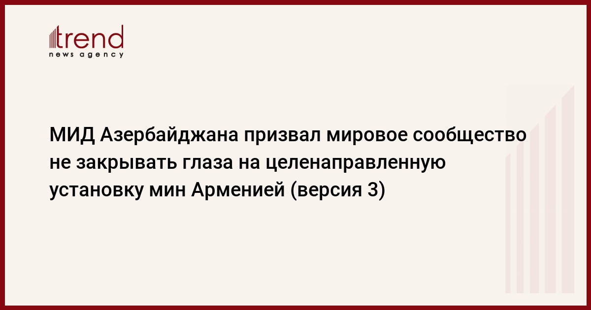 «Азербайджанская сторона постоянно поднимает в международной плоскости вопрос о том, что Армения целенаправленно и широкомасштабно минирует территории Азербайджана, грубо нарушая международное гуманитарное право, в том числе Женевскую конвенцию 1949 года. Произошедшее в Кельбаджаре еще раз показывает, что мины на этих территориях целенаправленно были установлены Арменией во время вынужденного отступления после контрнаступления Вооруженных сил Азербайджана. Цель состоит в том, чтобы нанести как можно больший ущерб Азербайджану и создать дополнительные барьеры для гражданского населения, которое вернется в свои дома.