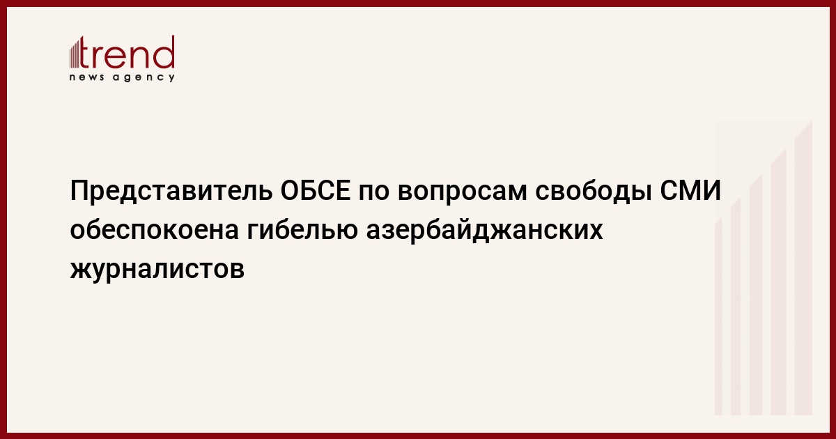 БАКУ / Trend / - Представитель ОБСЕ по вопросам свободы СМИ Тереза Рибейро выразила сегодня глубокую озабоченность и печаль в связи с гибелью двух азербайджанских журналистов в результате подрыва мины на освобождённых территориях Азербайджана, передает Trend со ссылкой на заявление.