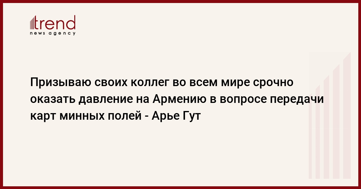 Как израильский политический эксперт, представитель Бакинского международного центра мультикультурализма в Израиле и исполнительный директор «Азербайджанского дома в Израиле» призываю своих коллег во всем мире незамедлительно оказать давление на Армению, которая обязана предоставить карты минных полей, подчеркнул Арье Гут.