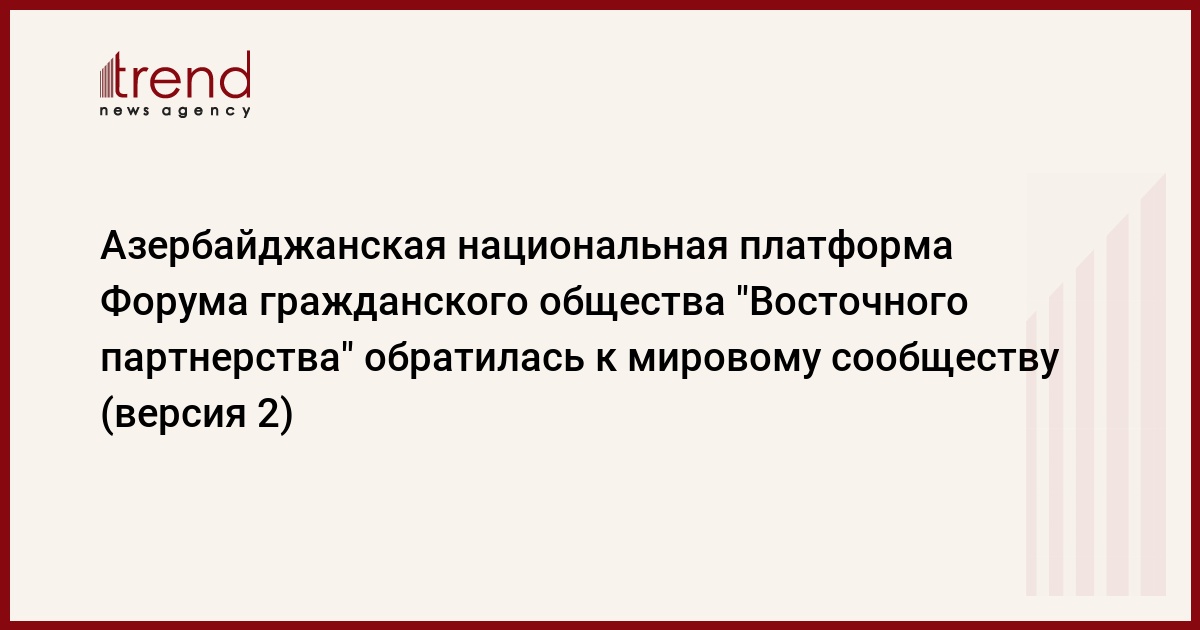Азербайджанская национальная платформа Форума гражданского общества "Восточного партнерства" осуждает этот подход Армении, которая подвергает опасности мирных жителей, а также однозначно препятствует началу восстановительных работ на освобожденных территориях, обеспечению прочного мира в стране и регионе, возвращению более одного миллиона беженцев и вынужденных переселенцев в свои дома. Призываем к мобилизации усилий по обеспечению безопасной и мирной обстановки в регионе. Спасение человеческих жизней и ускорение процесса постконфликтного восстановления и реконструкции имеют важное значение для прочного мира в регионе.