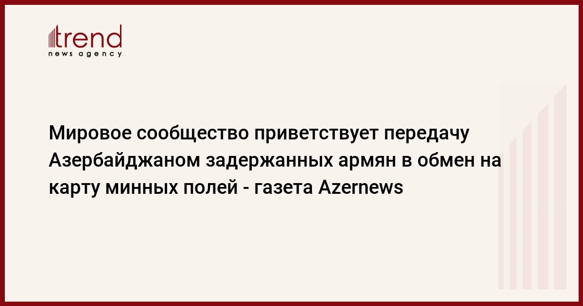 Как сообщает в понедельник Trend, в материале отмечается, что договоренность, которая приветствуется на глобальном уровне, предусматривает передачу Азербайджану карты минных полей в Агдамском районе в обмен на 15 задержанных армян.