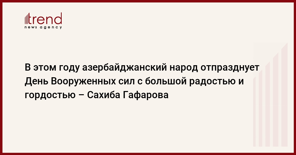 Гафарова поздравила с Днем Вооруженных сил победоносного Верховного главнокомандующего, героических солдат и офицеров, всех азербайджанских военнослужащих, пожелав им новых успехов.