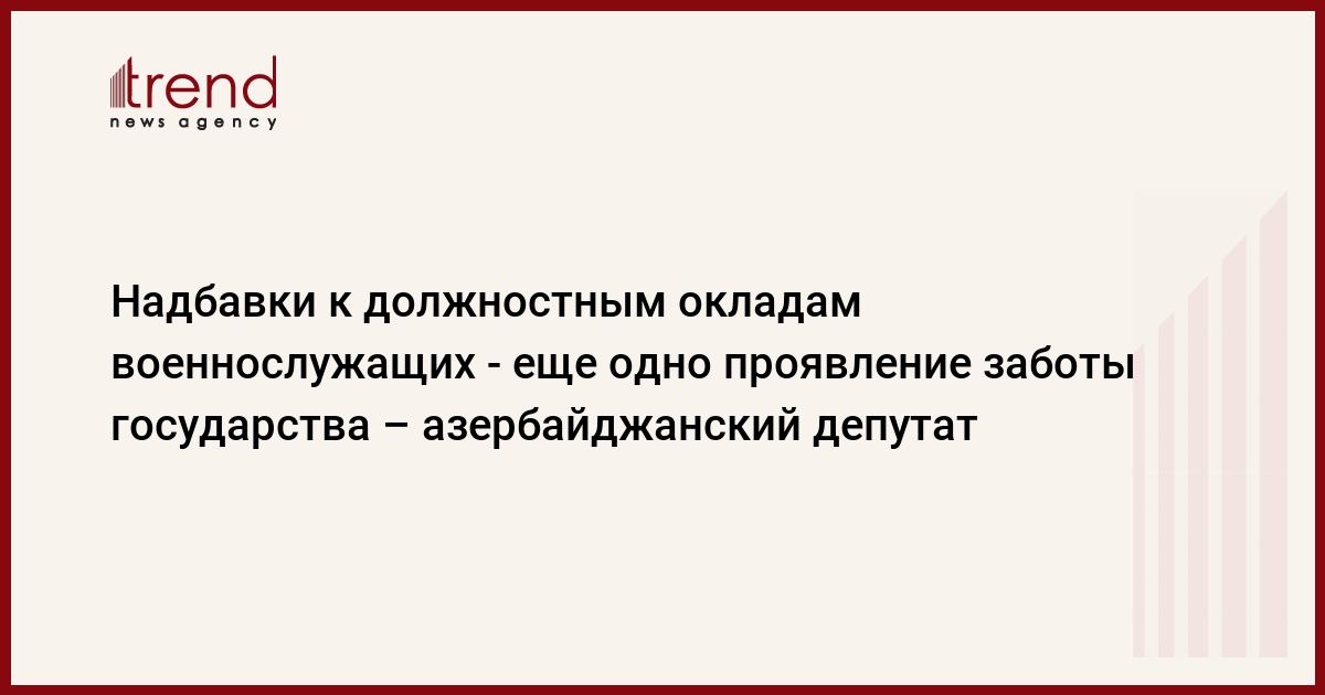 Отметим, что 25 июня Президент Ильхам Алиев подписал распоряжение об установлении президентской надбавки к ежемесячным должностным окладам военнослужащих минобороны Азербайджана, проходящих действительную военную службу на освобожденных от оккупации территориях. Надбавка устанавливается с 1 июля 2021 года, выплачивается министерством обороны Азербайджана в течение пяти лет с учетом срока и места службы военнослужащих в размере 20-60 процентов от их ежемесячного должностного оклада.