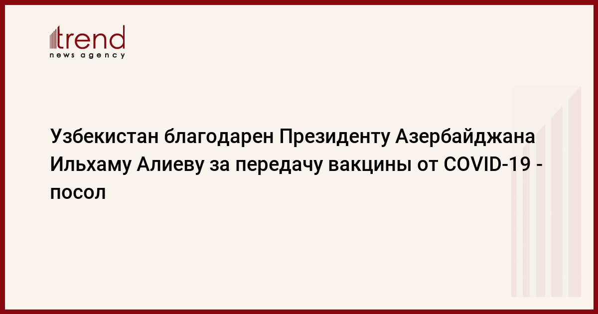 БАКУ /Trend/ - Узбекская сторона премного благодарна Президенту Азербайджана Ильхаму Алиеву за передачу Узбекистану 50 тысяч доз вакцины от коронавирусной инфекции.