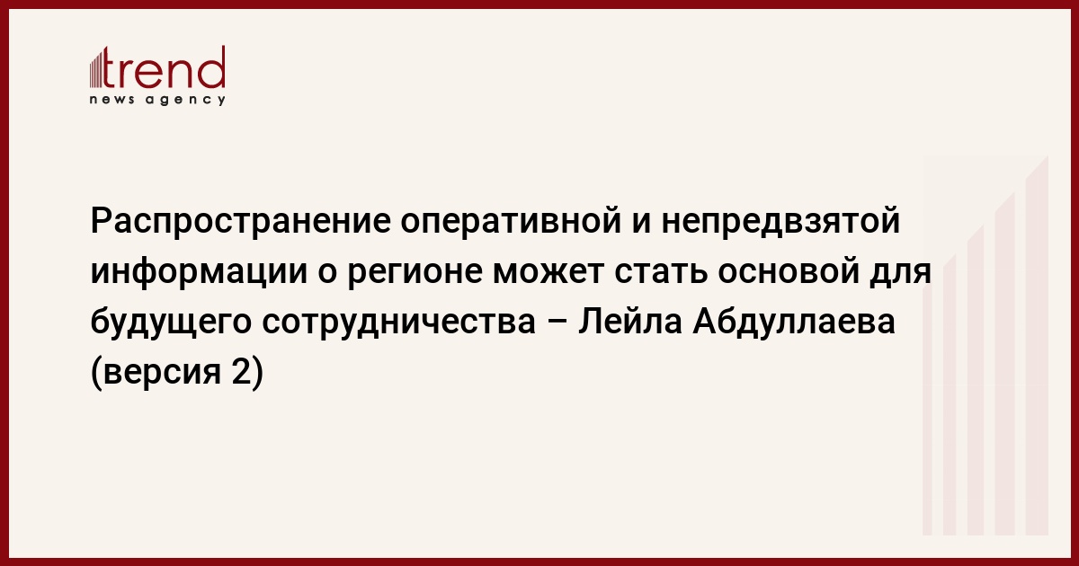 Как сообщает в субботу Trend, об этом на презентации совместного проекта Trend и ТАСС - медиаплатформы Eastweststream.com сказала глава пресс-службы МИД Азербайджана Лейла Абдуллаева.