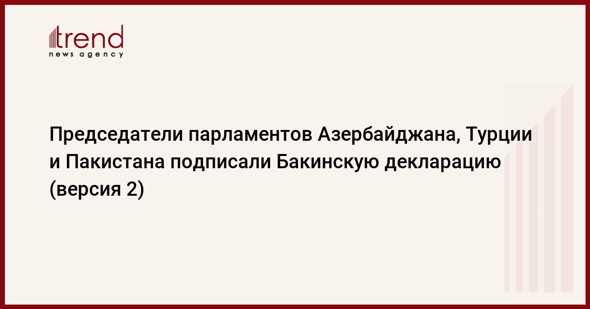 БАКУ /Trend/ - Председатели парламентов Азербайджана, Турции и Пакистана подписали по итогам трехстороннего заседания Бакинскую декларацию, сообщает во вторник Trend