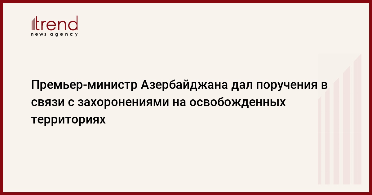 БАКУ /Trend/ - Премьер-министр Азербайджана дал поручения в связи с могилами и захоронениями на освобожденных территориях.