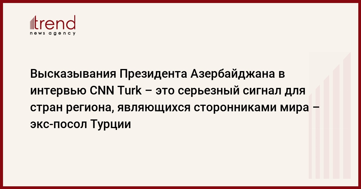 Он с уверенностью подчеркнул, что вопросы, затронутые Президентом Азербайджана Ильхамом Алиевым в интервью CNN Turk, станут серьезным сигналом для стран региона и международных организаций, которые являются сторонниками мира и развития.