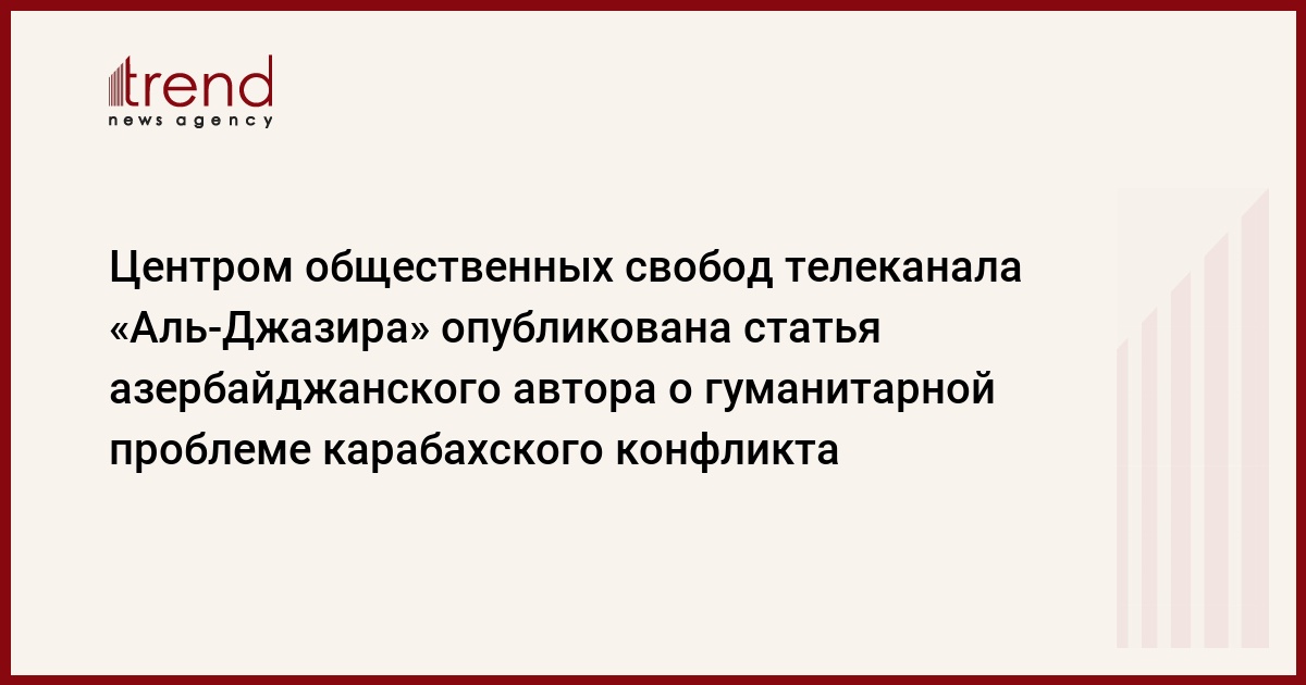 БАКУ /Trend/ - Центром общественных свобод и прав человека телеканала «Аль-Джазира» опубликована статья завотделом азербайджанского Центра анализа международных отношений Фуада Чирагова о гуманитарной проблеме карабахского конфликта и судьбе без вести пропавших лиц.