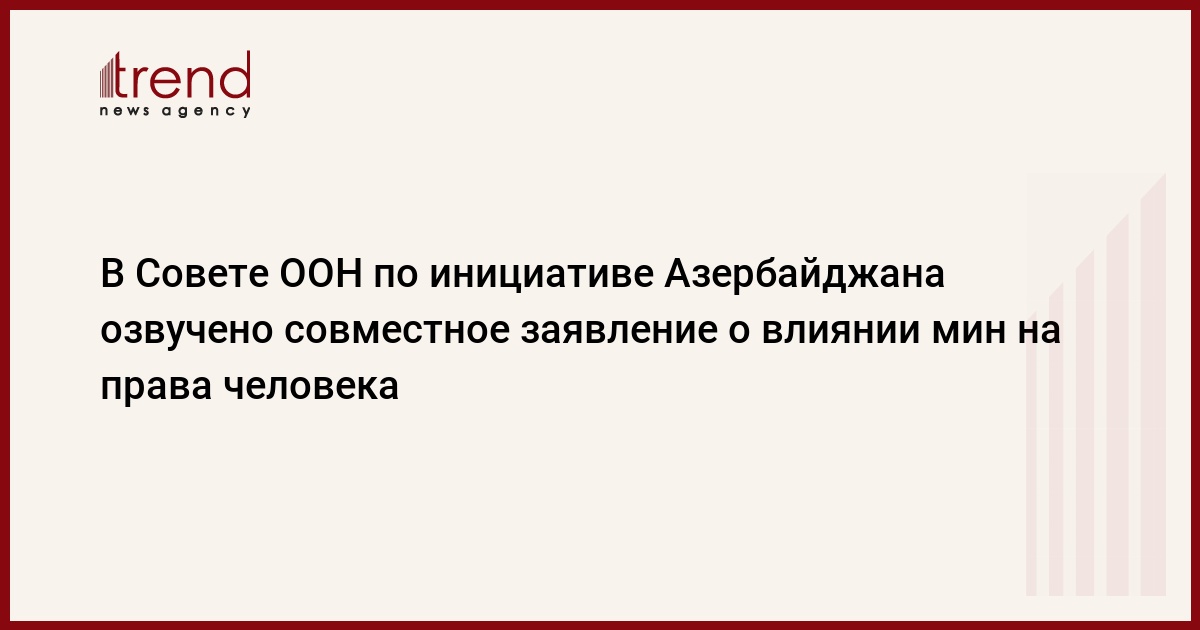 БАКУ /Trend/ - Во время общих дискуссий по пункту 4 повестки дня Совета по правам человека ООН (ситуации, требующие внимания Совета) в рамках продолжающейся 48-й сессии по инициативе Азербайджана и в соавторстве с 27 государствами – членами ООН из разных регионов мира было озвучено совместное заявление о влиянии наземных мин на права человека.