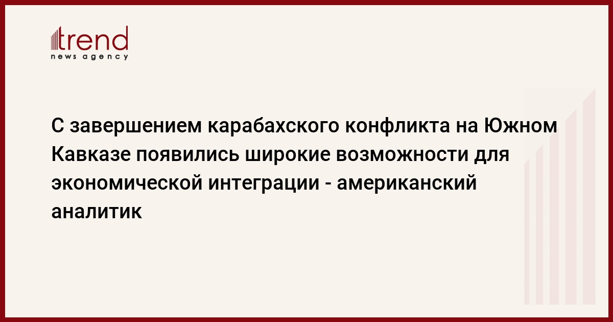 БАКУ/Trend/ - С завершением карабахского конфликта на Южном Кавказе появились широкие возможности для экономической интеграции.