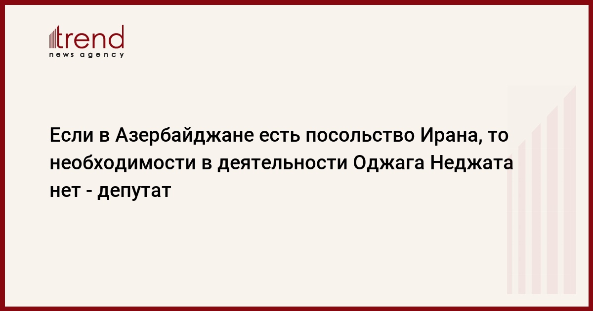 По его словам, если в Азербайджане есть посольство, то в дополнительном представительстве необходимости нет: "Распространившаяся информация показывает, что в период угроз со стороны Ирана на Азербайджан Оджаг Неджат собрал вокруг себя верующих и занимался в социальных сетях деятельностью, которая была направлена против Азербайджана. Эта информация должна быть расследована.