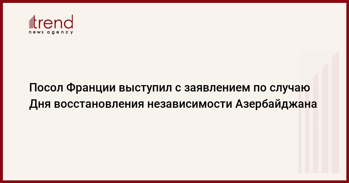 "По случаю 30-летия передаю дружественное послание Франции. Желаю Азербайджану усиления партнерства с Европой, ускорения адаптации к климатической и цифровой трансформации, заключения продолжительного мира с Арменией", - говорится в заявлении посла.