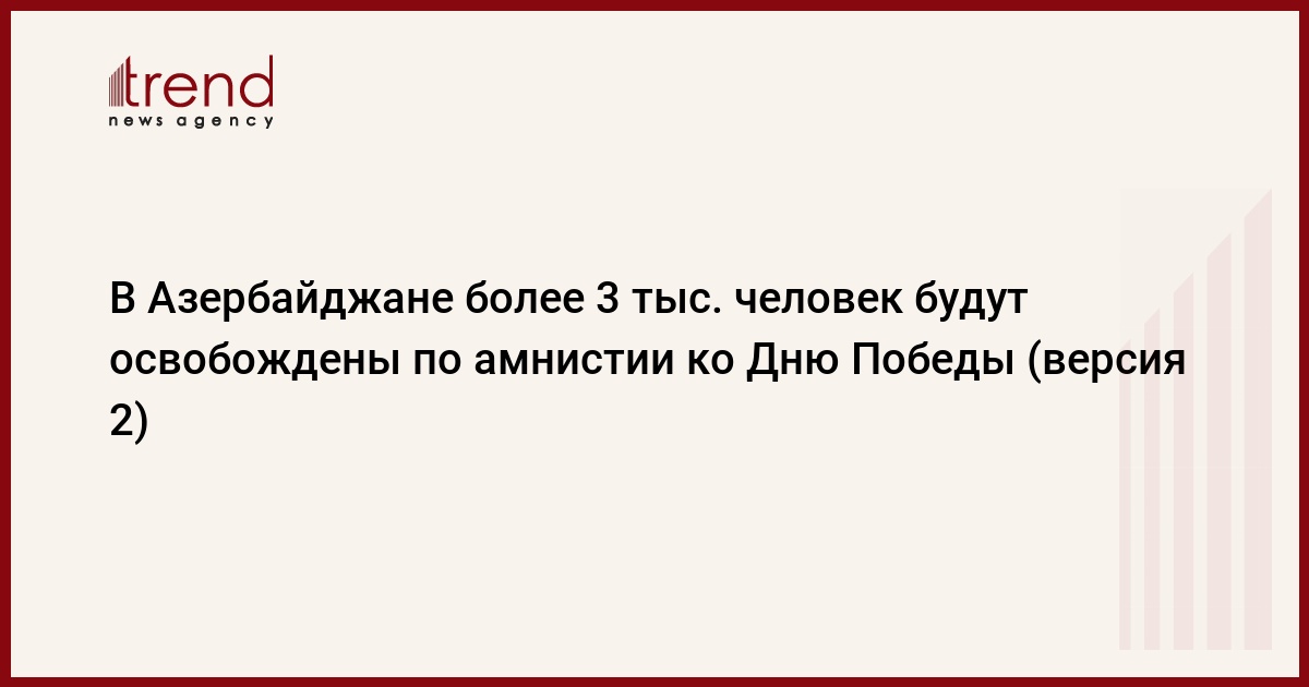 В связи с первой годовщиной исторической Победы в Отечественной войне ожидается, что этот акт об амнистии, направленный в Милли Меджлис (парламент) Президентом Азербайджана, коснется более 16 тысяч человек. Из них более трех тысяч граждан, отбывающих наказание в местах лишения свободы, будут освобождены. Также предусматривается, что до трех тысяч человек будут освобождены от неотбытой части наказания.