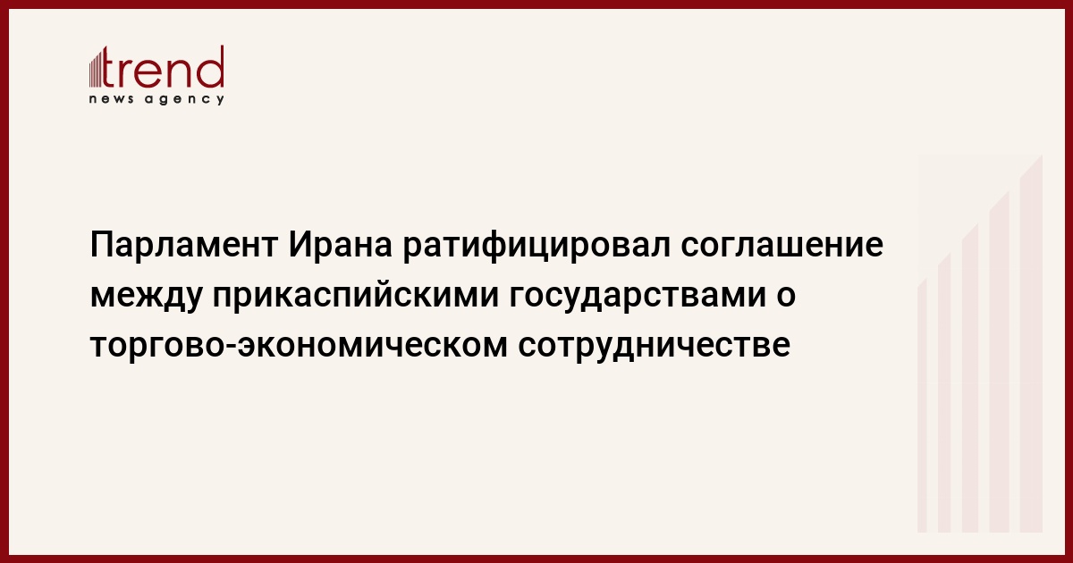 БАКУ /Trend/ - Парламент Ирана ратифицировал сегодня "Соглашение между правительствами прикаспийских государств о торгово-экономическом сотрудничестве", сообщает в среду Trend со ссылкой на информационный портал парламента Ирана.