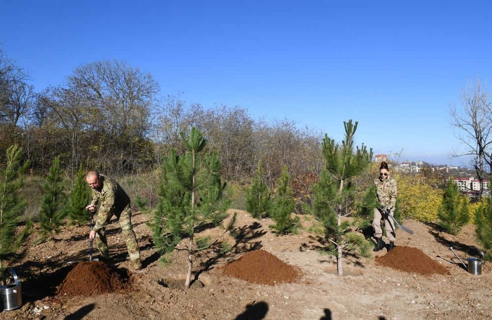 Как сообщает Trend со ссылкой на пресс-службу главы государства, Президент Ильхам Алиев и Первая леди Мехрибан Алиева посадили деревья на Джыдыр дюзю в рамках кампании по посадке по всей стране 44 тысяч деревьев в честь 44 дней, которые вели наш народ к великой Победе.