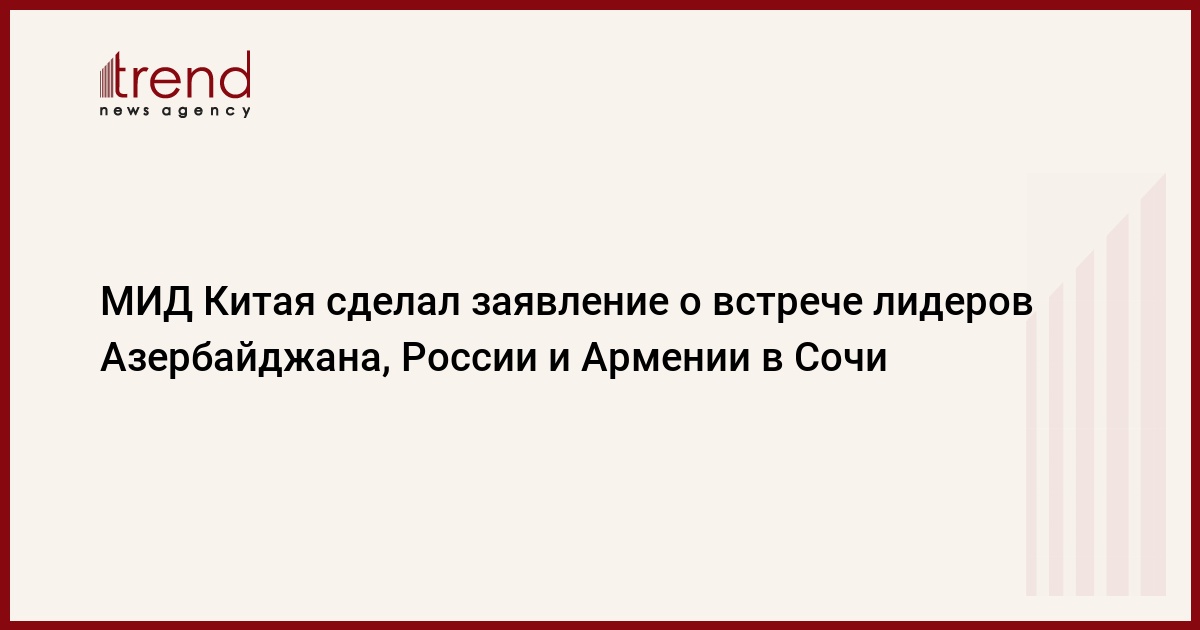 Как сообщает Trend со ссылкой на ТАСС, об этом сказал официальный представитель МИД КНР Чжао Лицзянь во вторник на брифинге, комментируя трехстороннюю встречу лидеров Азербайджана, России и Армении, которая прошла в Сочи на прошлой неделе.