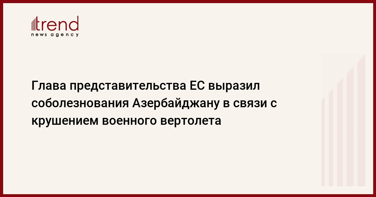 БАКУ /Trend/ - Глава представительства ЕС в Азербайджане Петр Михалко выразил соболезнования в связи с крушением военного вертолета в Азербайджане.