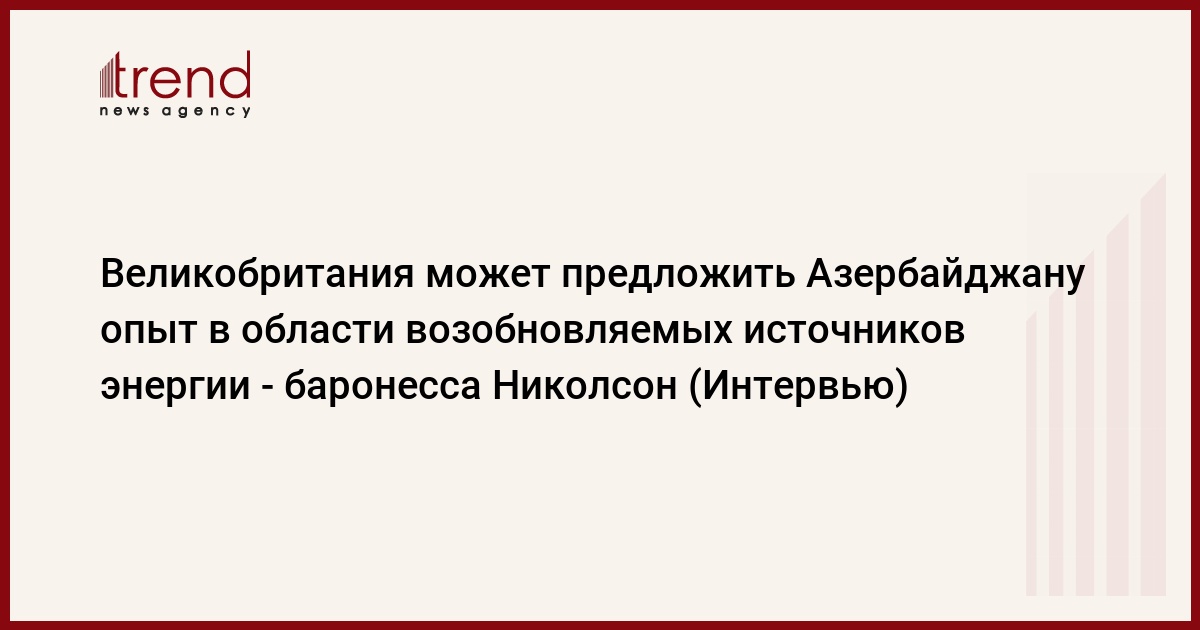 БАКУ /Trend/ - Эксклюзивное интервью АМИ Trend с торговым посланником премьер-министра Великобритании, баронессой Эммой Николсон