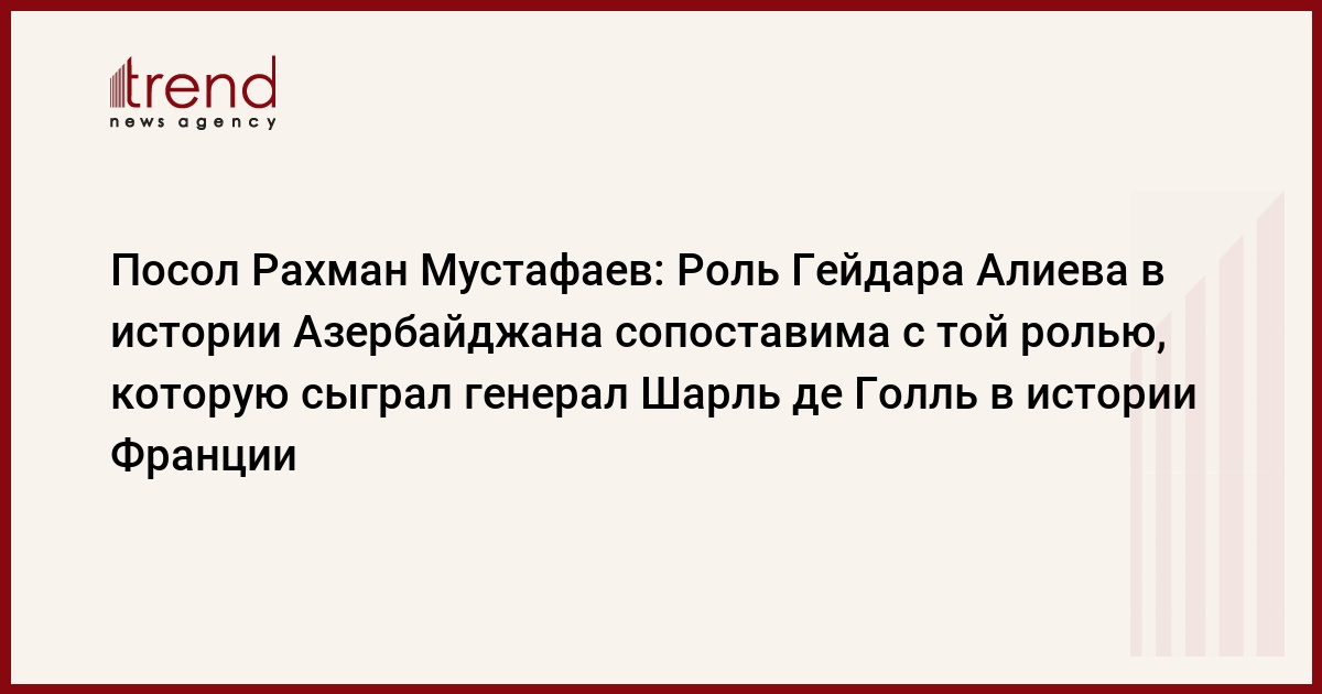 БАКУ/Trend/- Роль Гейдара Алиева в истории Азербайджана сопоставима с той ролью, которую сыграл генерал Шарль де Голль в истории Франции