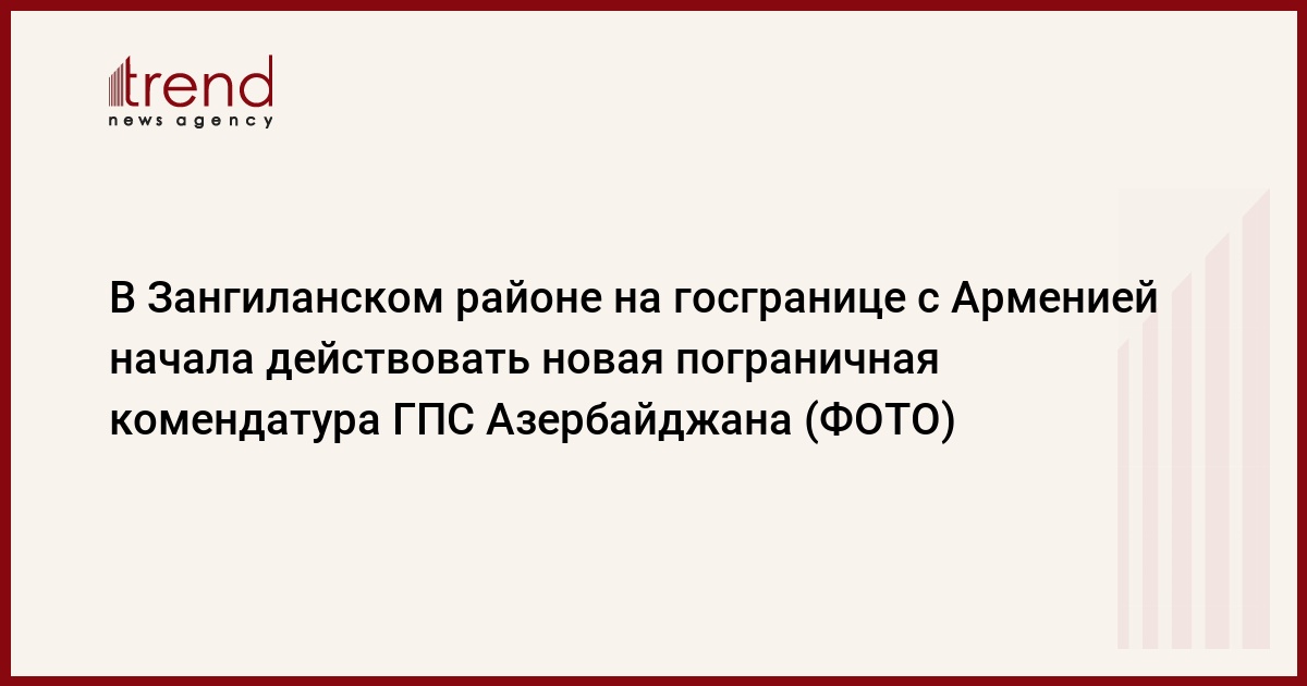 БАКУ /Trend/ - 14 декабря в Зангиланском районе на государственной границе с Арменией начала действовать новая пограничная комендатура, сообщает во вторник Trend со ссылкой на Государственную пограничную службу (ГПС) Азербайджана.