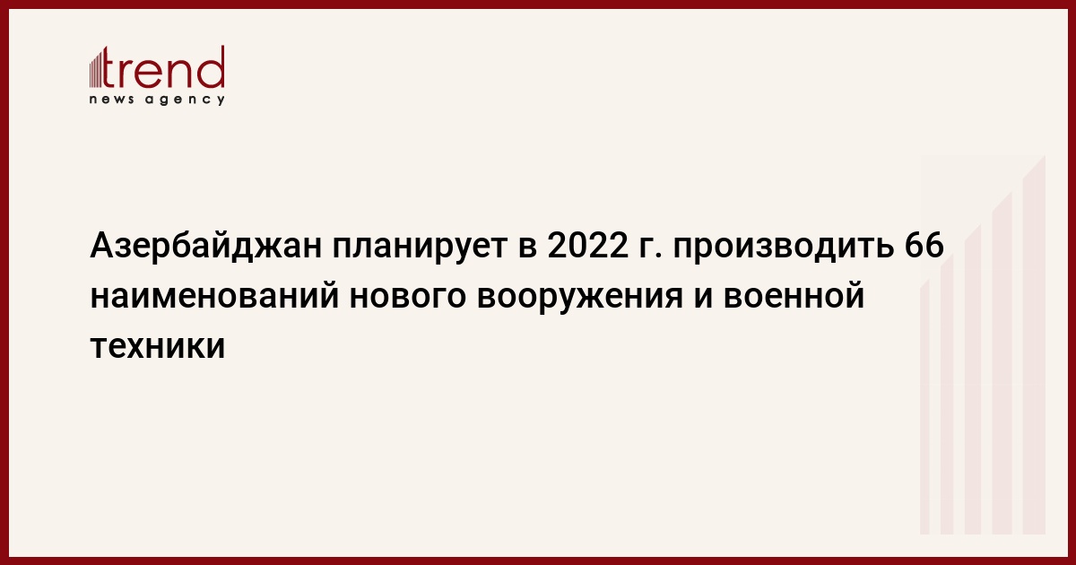 БАКУ /Trend/ - Министерство оборонной промышленности Азербайджана планирует в 2022 году производить 66 наименований нового вооружения и военной техники.