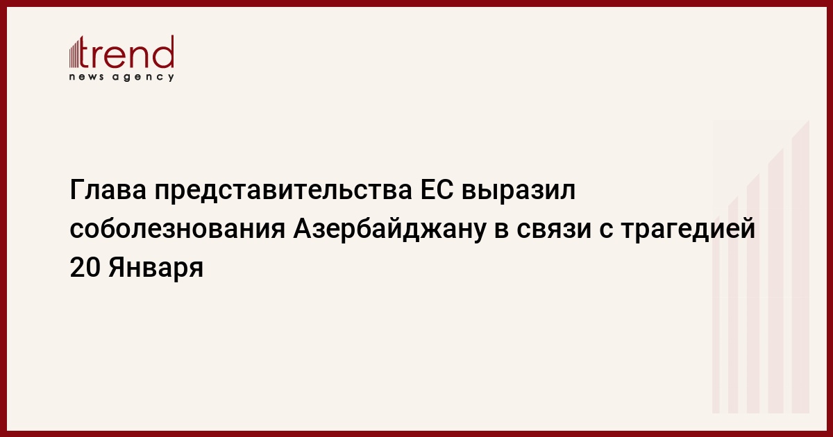 БАКУ /Trend/ - Глава представительства ЕС в Азербайджане Петр Михалко выразил соболезнования семьям и близким жертв трагедии 20 января, сообщает Trend.