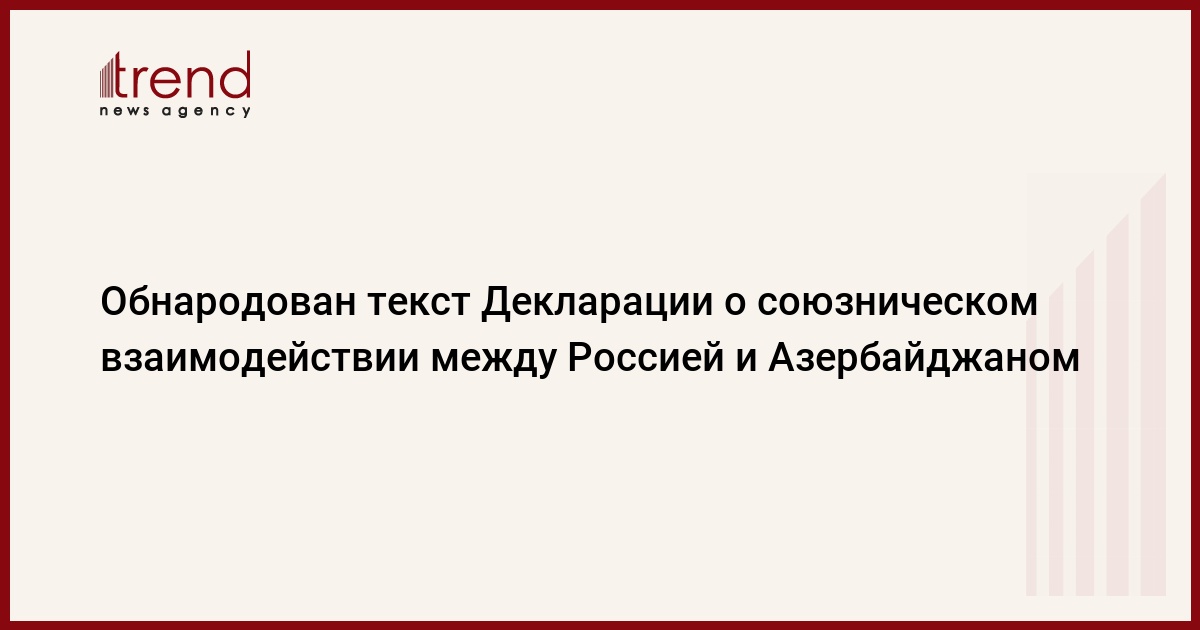 БАКУ /Trend/ - Опубликован текст Декларации о союзническом взаимодействии между Россией и Азербайджаном.